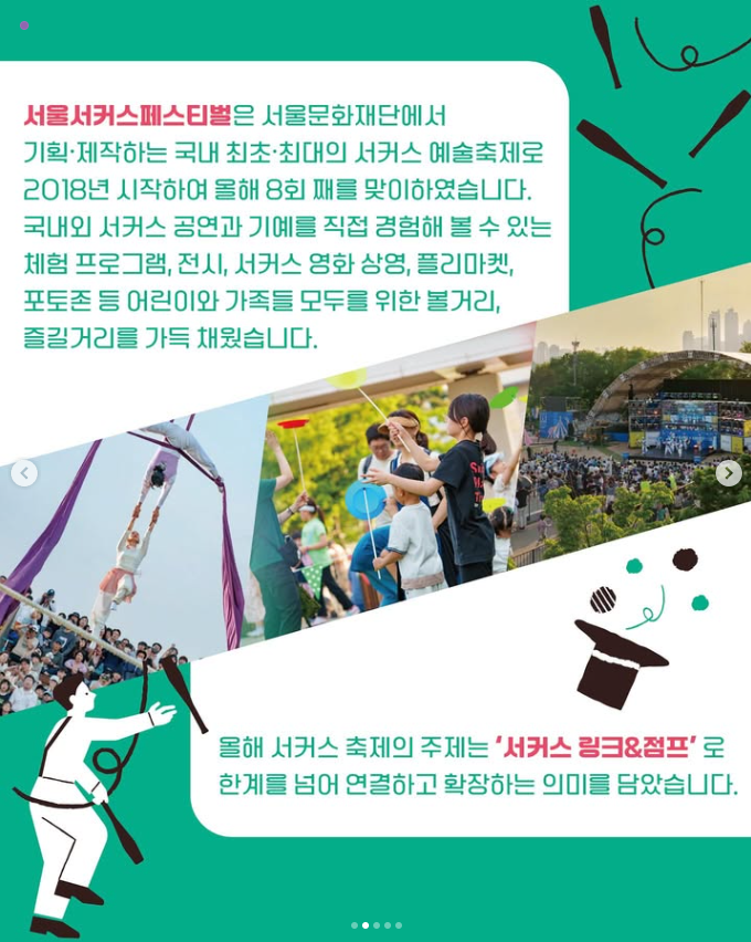 서커스로 한계를 넘어 연결하고 확장하는 의미를 담아 더욱 알차고 다채로운 프로그램으로 가득 채워질 예정입니다!